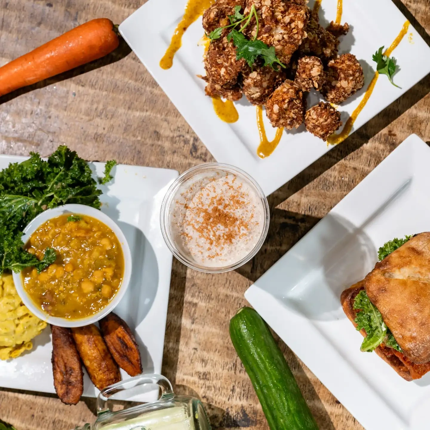 Our kitchen runs on real ingredients, bold flavors, and a love for nourishing food that feels good every time. Our plant-based cooking caters to a variety of appetites ensuring there’s something for everyone. Come for the good vibes, stay for the food that keeps you coming back.